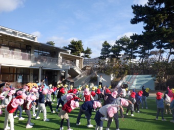 園庭のマラソンよりも長い距離を走り、途中で止まることなくみんな最後まで頑張りました。終わった後は、「まだまだ走れるよ!」と元気いっぱいの子どもたちでした。これからも寒さに負けない強い体作りをしていきたいと思います。