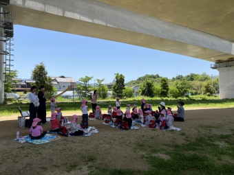 いちご狩りの後も、近くの広場でおにぎり弁当やおやつをおいしくいただきました。春の自然に触れながら遊び、楽しい1日を過ごすことができました。