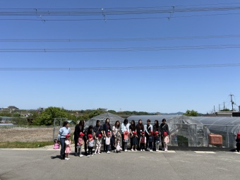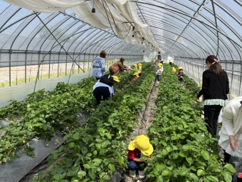 お天気に恵まれた5月上旬に、全園児と年少すみれ組の保護者の皆様と一緒にいちご狩り遠足に出かけました。