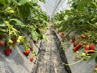 大型バスに揺られていちご畑へ到着すると、たくさんのいちごに大喜びの子どもたち。「すごく大きないちごがあったよ」と、おいしそうないちごを見つけては摘んで、にこにこ笑顔で食べていました。