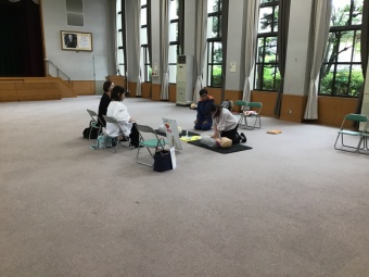 例年、夏の水遊び等の時期前に、市民救命士講習会を行っています。水難事故だけでなく、人命救助に関わることがあるかもしれません。胸骨圧迫・人工呼吸・AEDの扱い・気道異物除去等を学びました。万が一遭遇した時に、この講習会での学びが、自分や周りの人達の行動に繋がればと思います。