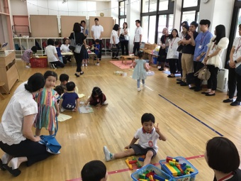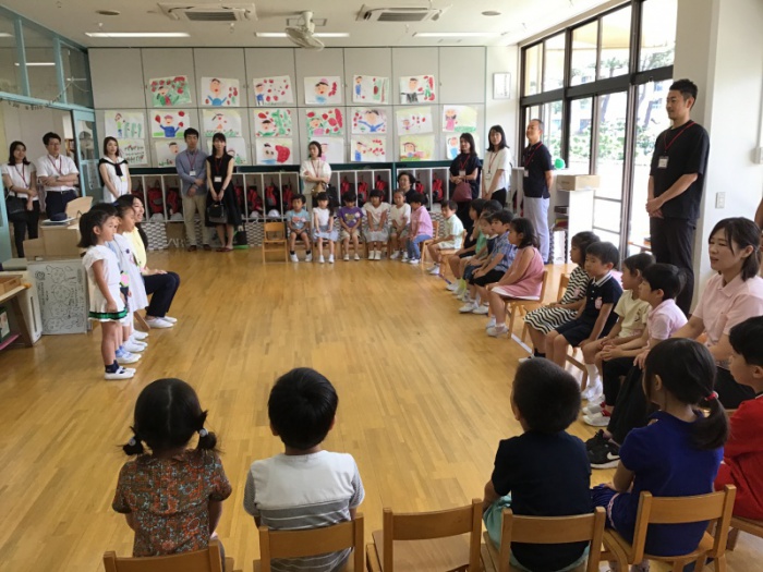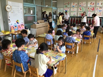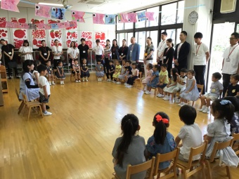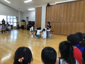 皆が集った朝の会では、気持ちの良い姿勢で、静かに話を聞くことができました。園庭のお山に実ったウメの実で、ウメジュースの作り方の話を聞きました。毎年作っているウメジュースですが、今年は数が少なかったことで、ひとつずつの実がとても大きく、より美味しいウメジュースが期待できそうです。