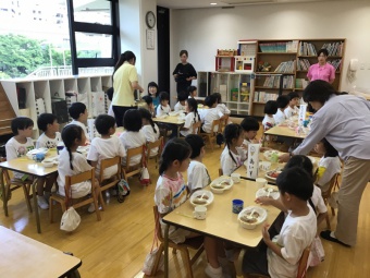 7月18.19日の一泊二日で年長さくら組のお泊まり保育を行いました。いつもは日中でしか過ごすことのない幼稚園で一泊し、楽しい時間を過ごしました。
