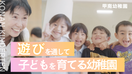 甲南幼稚園の保育について紹介しています。子どもたちのやりたい気持ち、友達と遊ぶ楽しさをみんなの笑顔から、そして広々とした園舎園庭でたっぷり遊ぶ様子から感じていただければと思います。