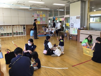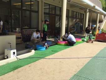 外では簡単な水遊びをしていただいたり、暑い中ではありましたが、元気に園庭で遊ぶ子どもたちもいました。