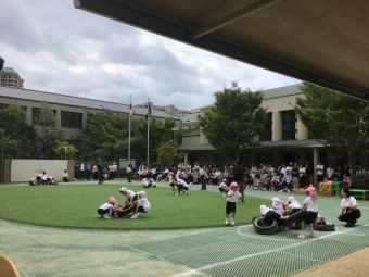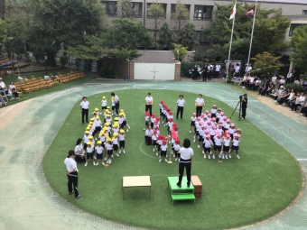 9月27日(金)、爽やかな気候の中、幼稚園運動会を行いました。9月下旬にようやく秋らしい爽やかな風が吹くようになりましたが、それまでの期間、練習時間を調整しながら、子どもたちは運動会に向けてクラスの友達と力と心を合わせ、取り組んできました。運動会当日は、たくさんの保護者の方に声援を送っていただきながら今まで頑張ってきた姿を見ていただくことができました。