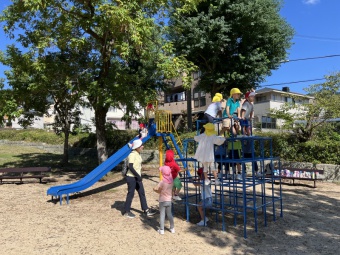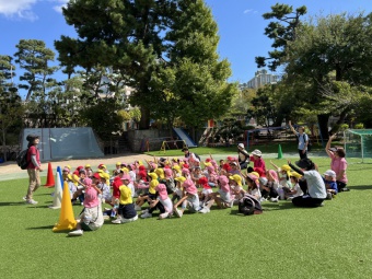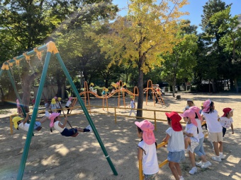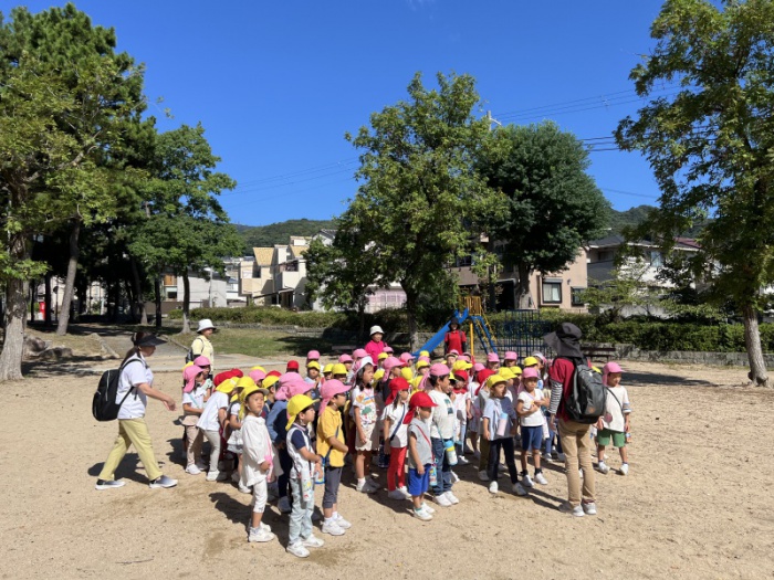 爽やかな気候で良いお天気の中、3学年揃って縦割り保育なかよし会で野寄公園にお散歩に行きました。