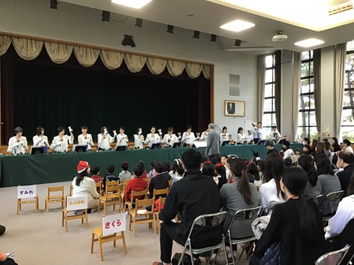 今回は、YMCAのディンドンリンガーズによるハンドベルコンサートがありました。幼稚園児や小学生、保護者の方と共に色々なベルの音を楽しみました。