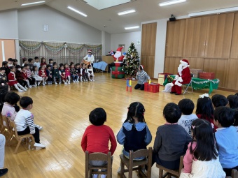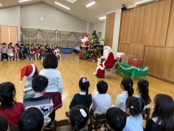 幼稚園のみんなで、サンタさんと一緒に楽しいひとときを過ごすことができて大満足の1日でした。