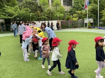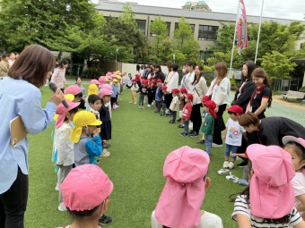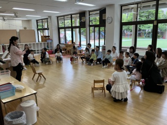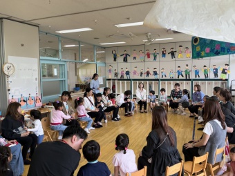 今日は親子なかよし歓迎会がありました。4月に入園した年少すみれ組さんを歓迎する会であり、また保護者の方同士も親睦を深めていただけたらと願い、全親子が集いました。