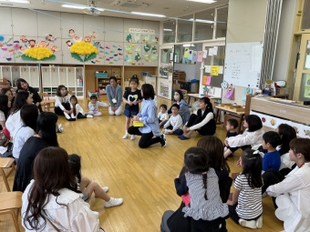 最後に縦割りのなかよし会のチームに分かれて、保育室で自己紹介やゲームをしました。短い時間でしたが、皆さんとの親睦を深められた楽しい時間となりました。