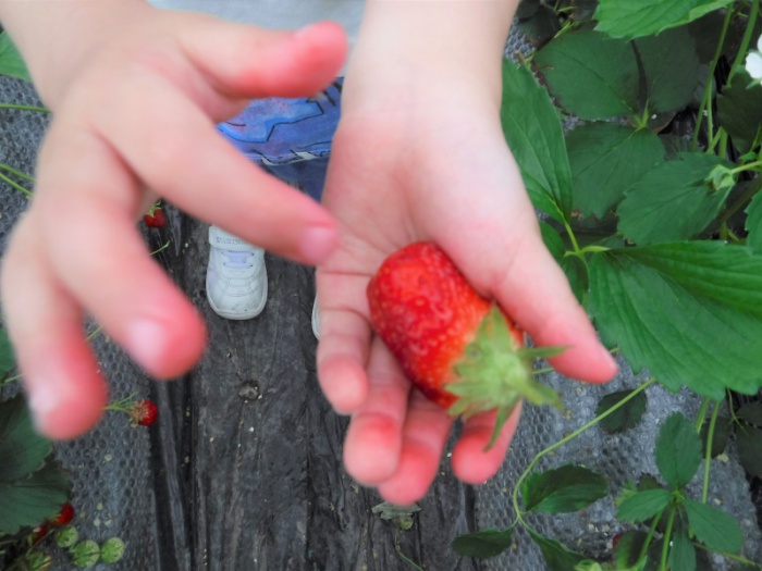 真っ赤ないちごを見つけたよ