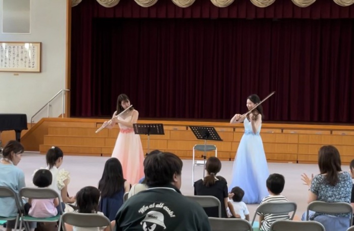 今日はフルート・バイオリン奏者「デュオてまり」さんによる音楽コンサートでした。