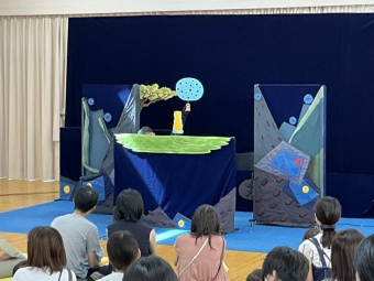 ペープサートや人形を使った劇で、「チーターじまんのてんてん」がいろいろな動物にとんでいき、チーターに帰ってくるのか、大人も子供もドキドキわくわくしながら見ていました。「だめだめすいか」では、スイカをじいじにとどけるたっくんとひょっこりあらわれたタヌキとのやりとりにハラハラしましたが、最後には心温まるとても良いお話でした。