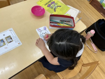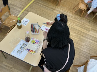 そのあとは、工作遊びで「フォトフレーム」を作ったり、園庭遊び、室内遊びなどに分かれて遊んでいただきました。