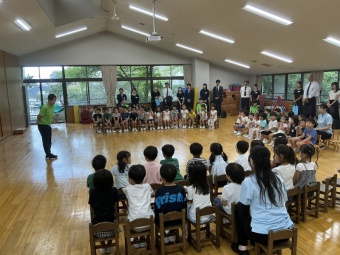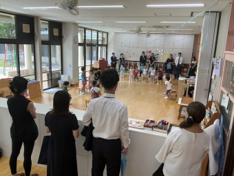 全園児で集う朝の会に始まり、3学年各クラスの活動を見ていただきました。