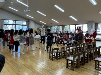 年長さくら組による歌「クリスマスのうたがきこえてくるよ」の合奏も披露することができ、