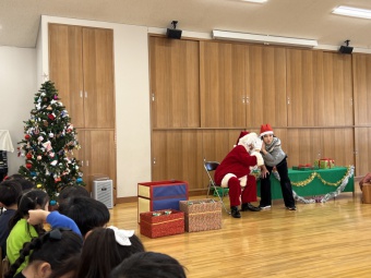 サンタさんからプレゼントをいただき、目をキラキラと輝かせる子どもたちでした。