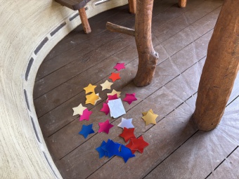 覗いてみると魔女からの手紙と魔女が落としたであろう星を見つけました。魔女の姿は見ることができなかったけれど、一人一つ星をもらって嬉しそうな子どもたちでした。