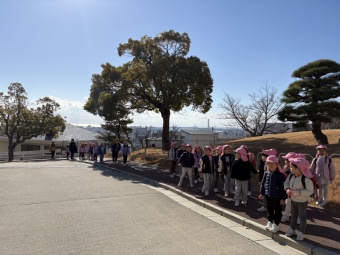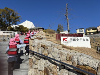 1月23日(金)、年長さくら組で甲南女子大学の里山まで歩く“がんばり遠足”を行いました。寒い日ではありましたが、歩いているとポカポカしてきて心地よく歩いていました。帰りは少し疲れも見られましたが、最後まで頑張って歩き切ることができました。