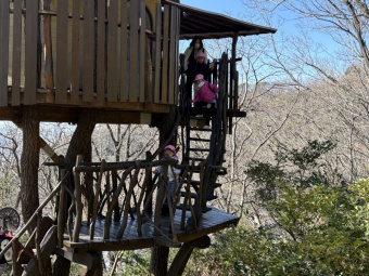 そして、山の入り口に到着!ここを上れば魔女のお家です。たくさんの落ち葉をかき分けながら無事みんな頂上に到着しました。そこには、素敵なツリーハウスが!