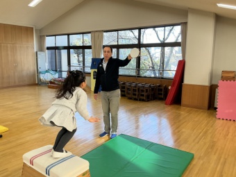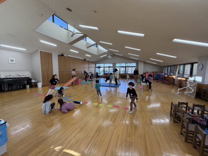 活動を始めた1学期の頃は、普段と違う環境や友達に少し緊張した様子も見られましたが、回を重ねる中で少しずつ打ち解け、3学期初めての今回は、年齢の違いを越えて自然に声を掛け合い、和気あいあいと楽しく過ごす姿が見られるようになりました。年上の子が年下の子を気にかけたり、遊びの中で思いやりの気持ちが育つ様子も感じられました。