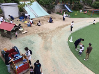 園庭開放 なかよし幼稚園「シャボン玉できたね」