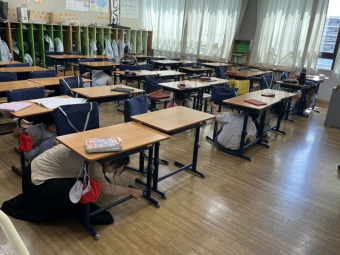 水曜日に、地震発生を想定した避難訓練を行いました。