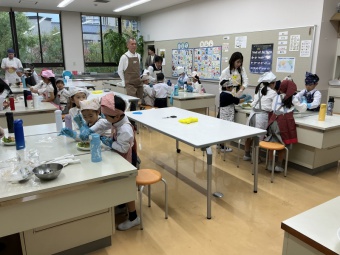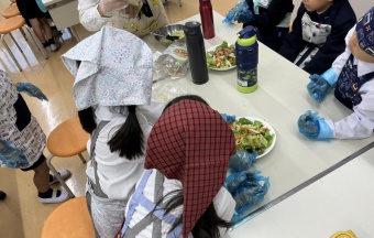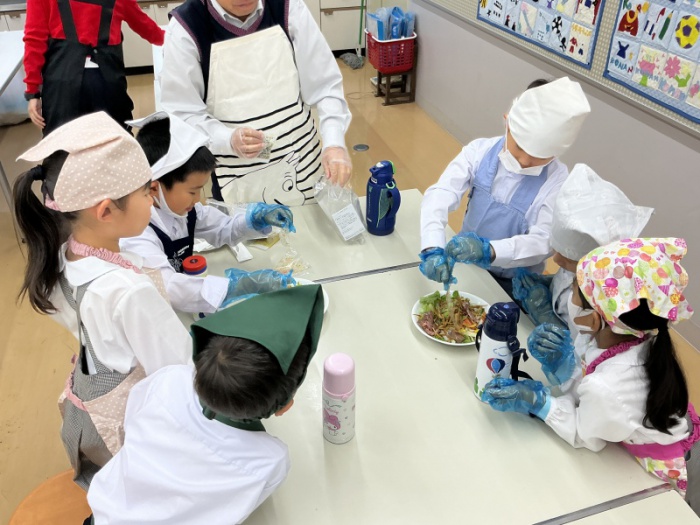 1年生は食育の一環として、レタスについて学び、実際にレタスサラダを作りました。レタスの味の違いを感じ、みんなで美味しくいただくことができました。