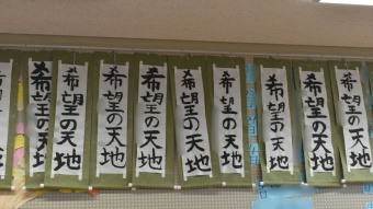 1・2年生は硬筆、3~6年生は毛筆に挑戦し、子どもたちは、朝会時に各学年の作品を見て回りました。