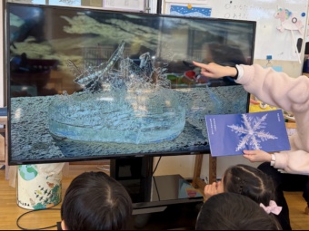 そこで、温度計を見ながら0度より上は暖かいこと、0度より下は寒いこと、そして0度より下になると水が氷に変わることを伝えました。