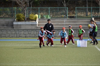 タグを使用した遊びやタグラグビーのミニゲーム、ラグビー部の方々の実演など、幅広い内容に取り組むことの出来た充実の2日間となりました。