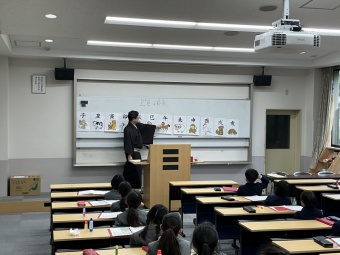 今日は、「上巳の節句」についての学習を行いました。「上巳の節句」とは、「雛祭り」「桃の節句」ともいい、雛人形や調度類を飾り、白酒や菱餅、蛤の吸い物、桃の花などを供えて、女児の健やかな成長を祈る行事です。