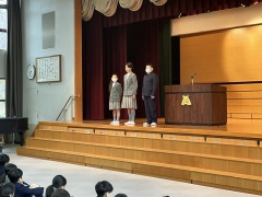 式の最後には、運営委員の児童の交代式を行い、6年生委員からは一年を振り返って、5年生委員からはこれからの抱負を述べてもらいました。