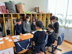 保護者の皆様が教職員の説明をお聞きになっている間、園児たちは4つのグループに分かれ、1年生と2年生と交流会を行いました。