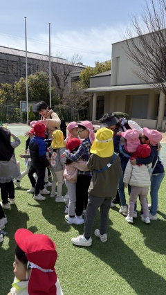 幼稚園に帰った後は、1年間遊んでくれたペアの友達と先生にありがとうの気持ちを込めてハグをしました。異年齢の子どもと過ごす、楽しくて成長の多い一年となりました。さくら組さんありがとう!