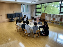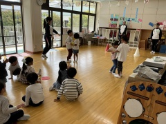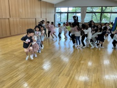 甲南女子高等学校1年生のお姉さん方が、探求の授業の一環で遊びにきてくれました。幼稚園の子どもたちのために、いろいろな楽しいゲームを考えてくれました。優しいお姉さんと仲良くなれて、たくさん遊んでもらえて、子どもたちは大喜びでした。