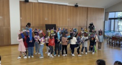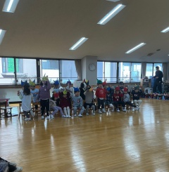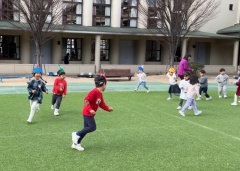 寒い日が続く中、2月3日の節分の日を迎えました。節分の会では、3学年揃って鬼のパネルシアターを見て楽しみ、それぞれのクラスで作った鬼のお面を披露しました。「なきむし鬼」や「おこりんぼう鬼」など学年ごとに趣向を凝らした鬼のお面が完成しました。最後には、年長さくら組のみんなのお腹の中に鬼が入ってしまい、しばらくの間さくら組のみんなは鬼になってしまいました。しかし学園長先生と一緒に、年中たんぽぽ組と年少すみれ組のみんなで大きなかけ声と共に豆まきをし、お腹の中の鬼を追い出し無事にさくら組のみんなに戻ることができました。