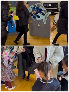 年中組 虹色うろこチケットを貼って