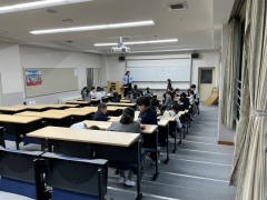 登校班別集会を行い、1年生も一緒に集合場所や時刻、通学ルールやマナーについて確認し、話し合いました。