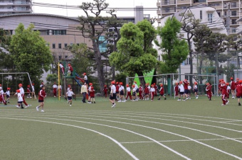 はじめは、運動場で歓迎会。運営委員会が考えた宝探しや貨物列車等を行い、盛り上がりました。